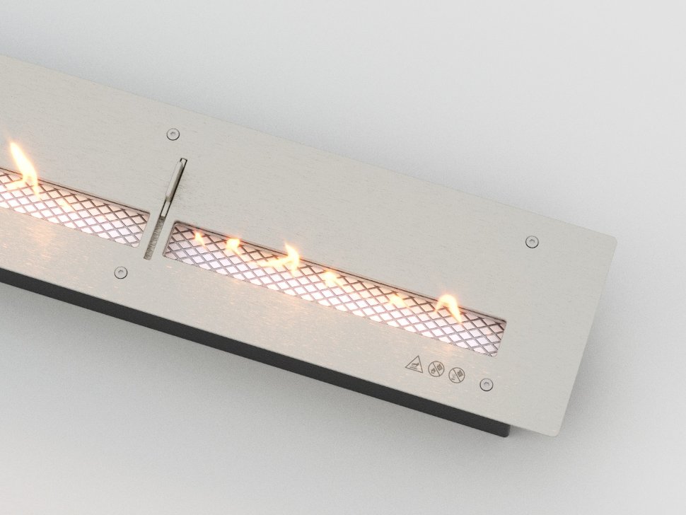 Блок оснащен встроенным пламегасителем, при этом удобно декорировать топливный блок керамическими дровами, они не создают препятствия ходу задвижки.